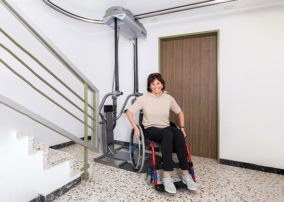 Dank der Deckenmontage ist der RL 60P die perfekte Lösung für enge oder steile Treppen, da er keinen Platz auf den Stufen beansprucht und sich flexibel an unterschiedliche Gegebenheiten anpasst.