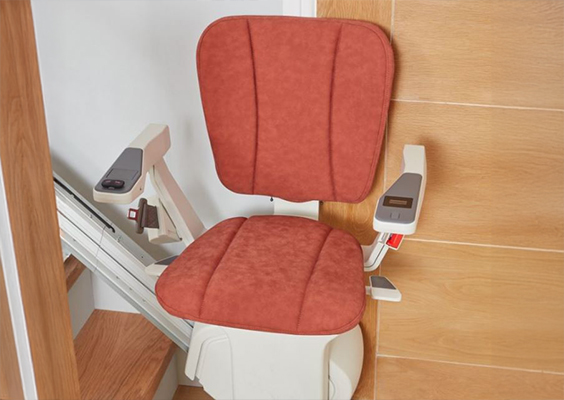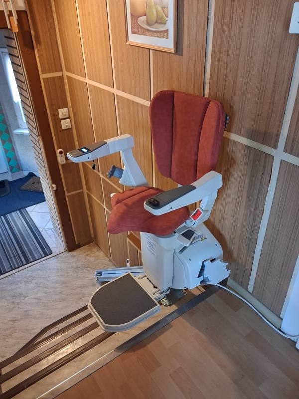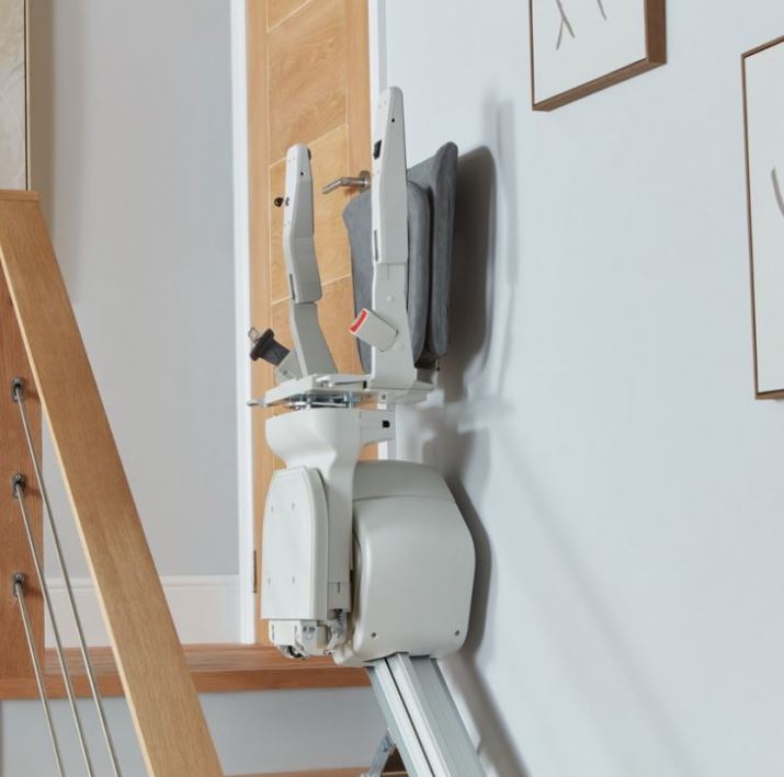 Zusätzlich lassen sich Sitz, Armlehnen und Fußbrett hochklappen, wenn Sie den Treppenlift nicht benutzen.